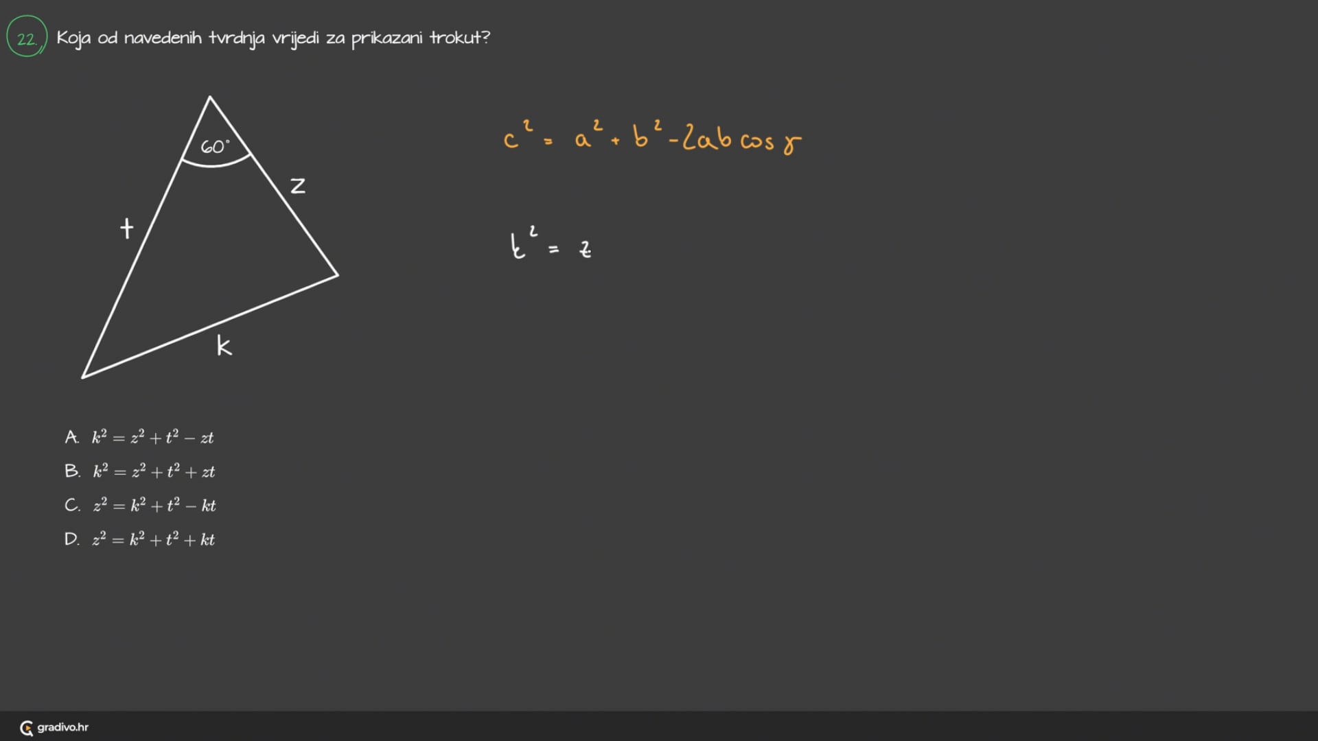 C. $z^{2}=k^{2}+t^{2}-k t$