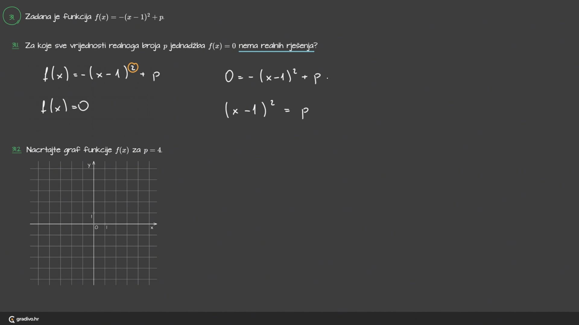 31.1. Za koje sve vrijednosti realnoga broja $p$ jednadžba $f(x)=0$ nema realnih rješenja?