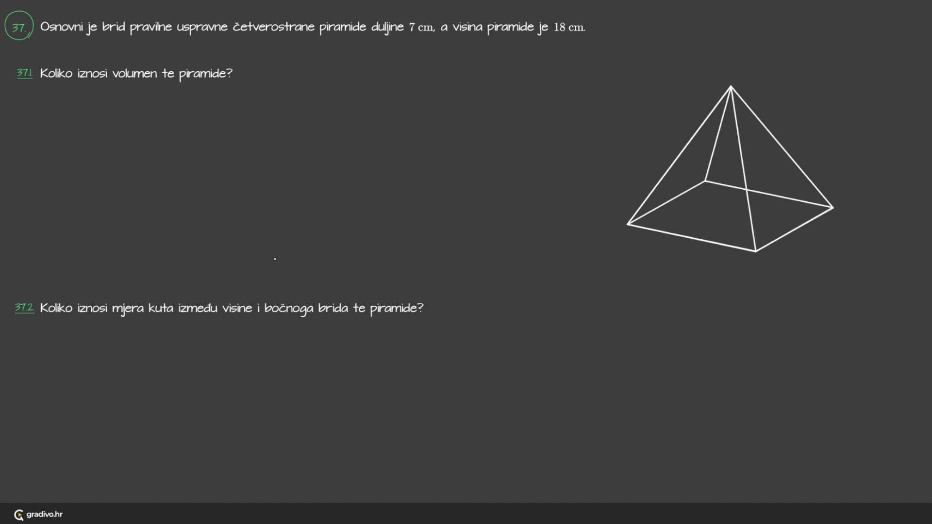 37.2. Koliko iznosi mjera kuta između visine i bočnoga brida te piramide?