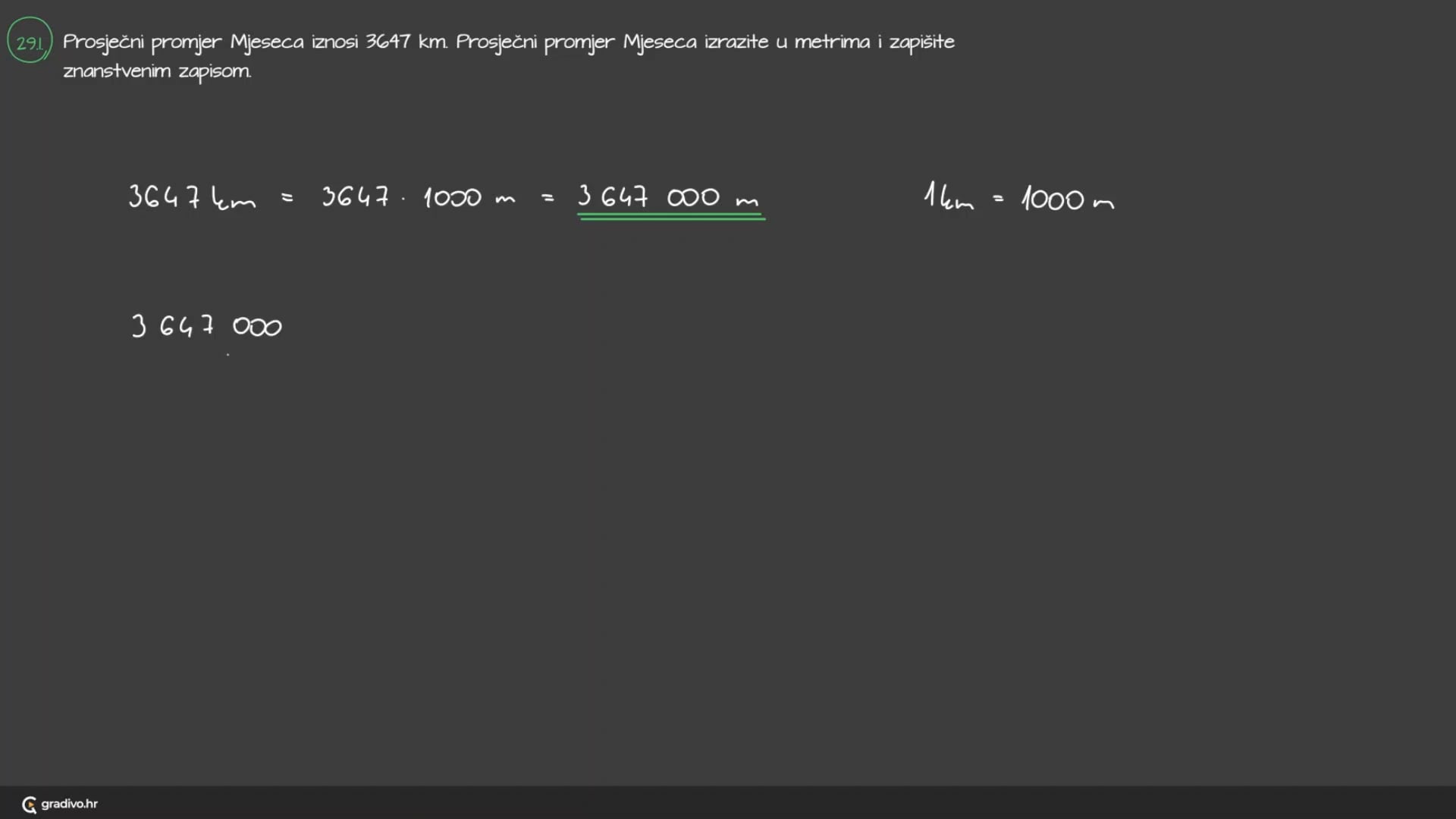 Prosječni promjer Mjeseca iznosi 3647 km. Prosječni promjer Mjeseca izrazite umetrima i zapišite znanstvenim zapisom.