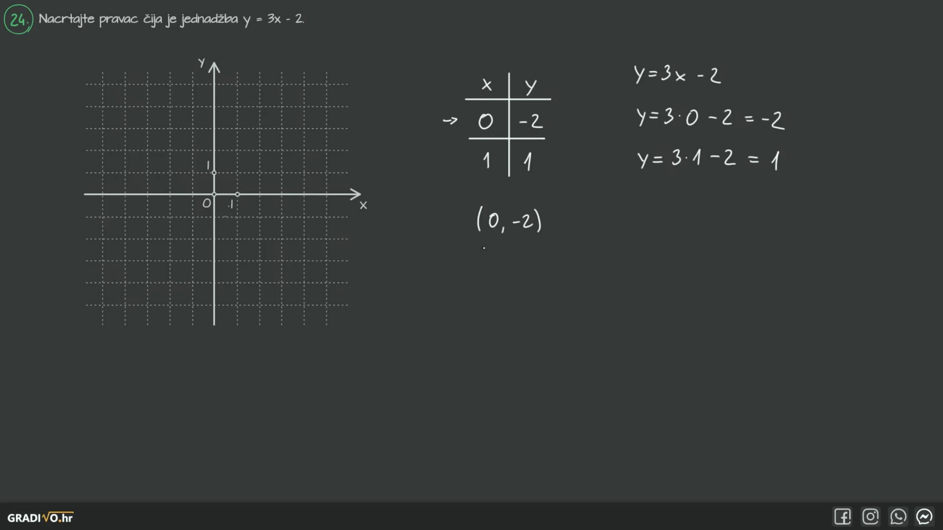 Nacrtajte pravac čija je jednadžba $y=3 x-2$.