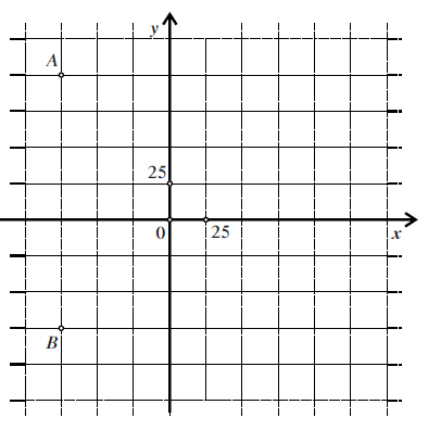 Na timskome radu grupa je dobila zadatak u kartu ucrtati svoj položaj. U tome trenutku nalaze se u točki $T(150,-75)$. Koordinate njihova položaja dane su u metrima.