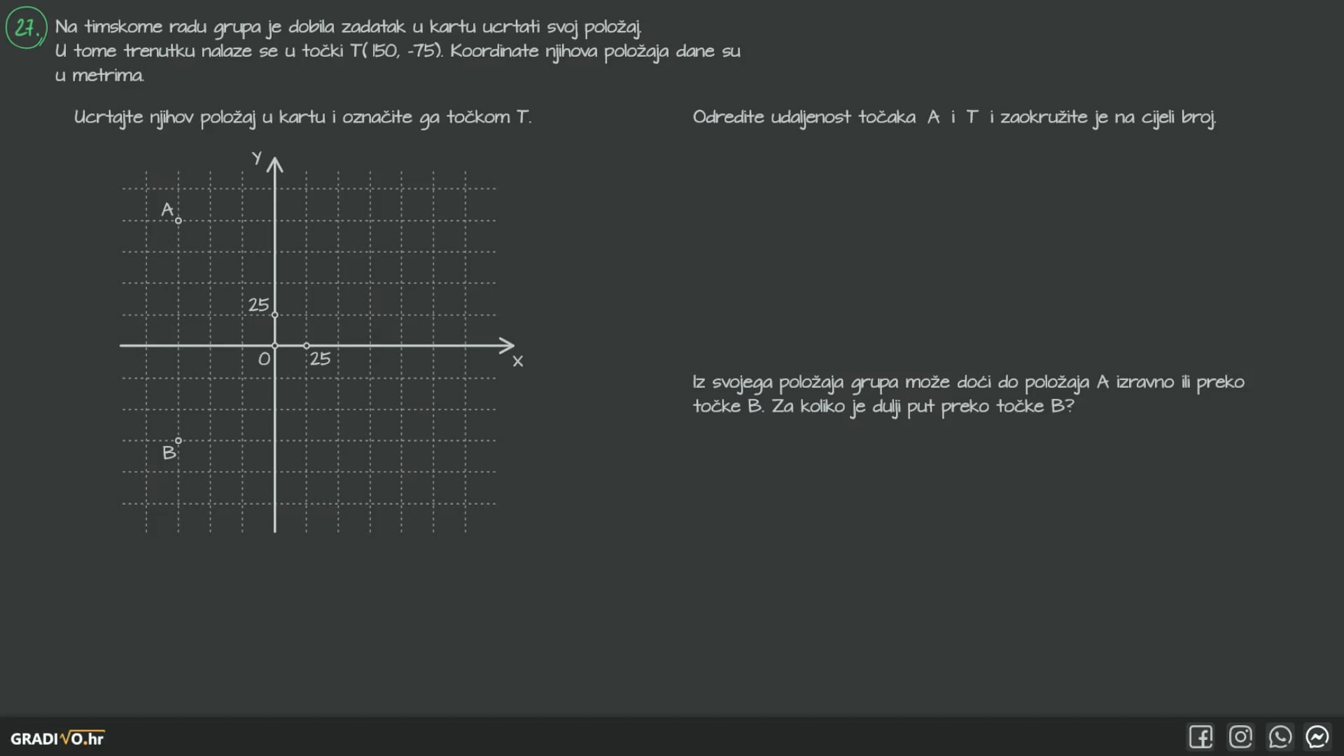 27.1. Ucrtajte njihov položaj u kartu i označite ga točkom $T$.