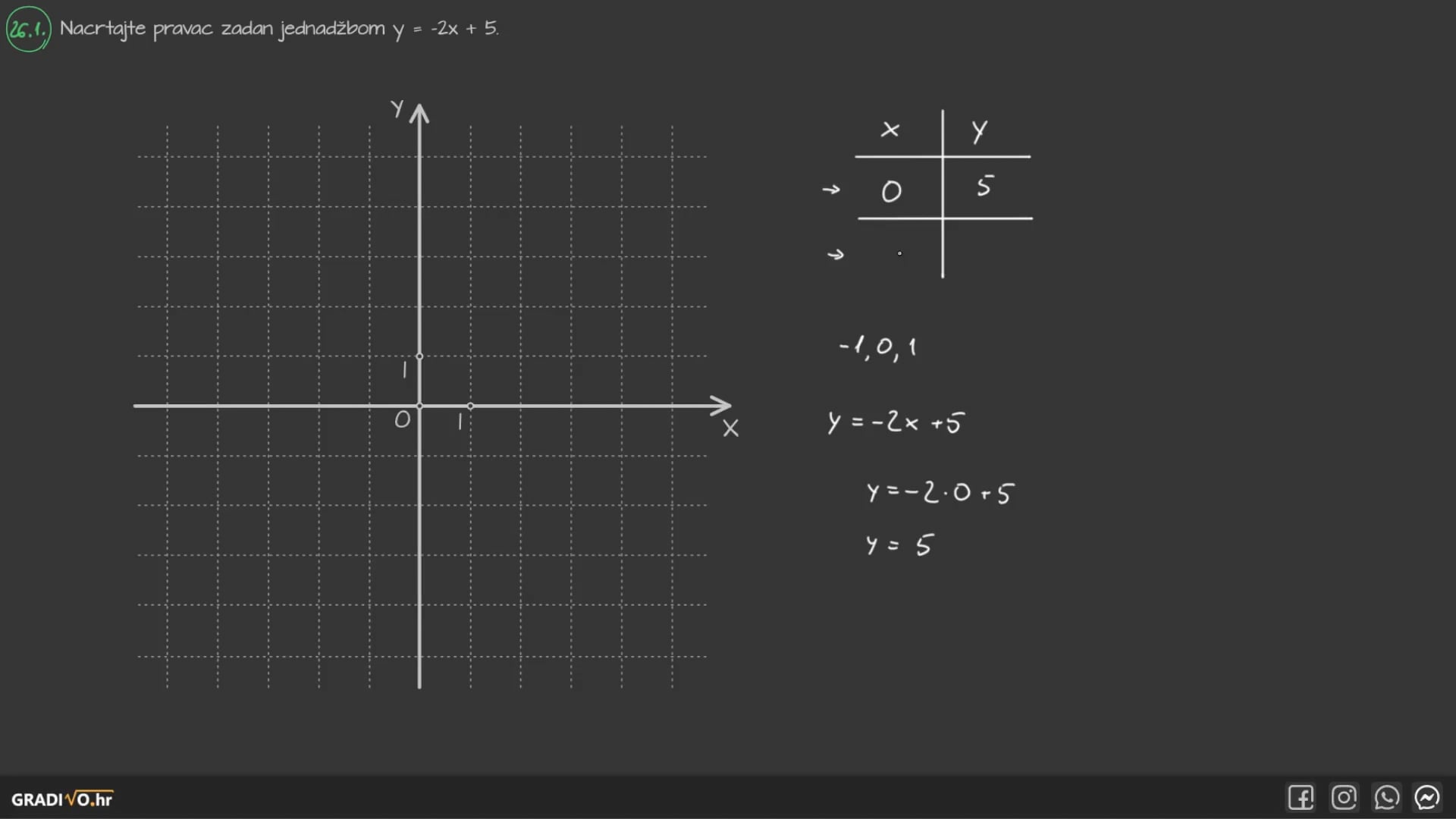 Nacrtajte pravac zadan jednadžbom $y=-2 x+5$.