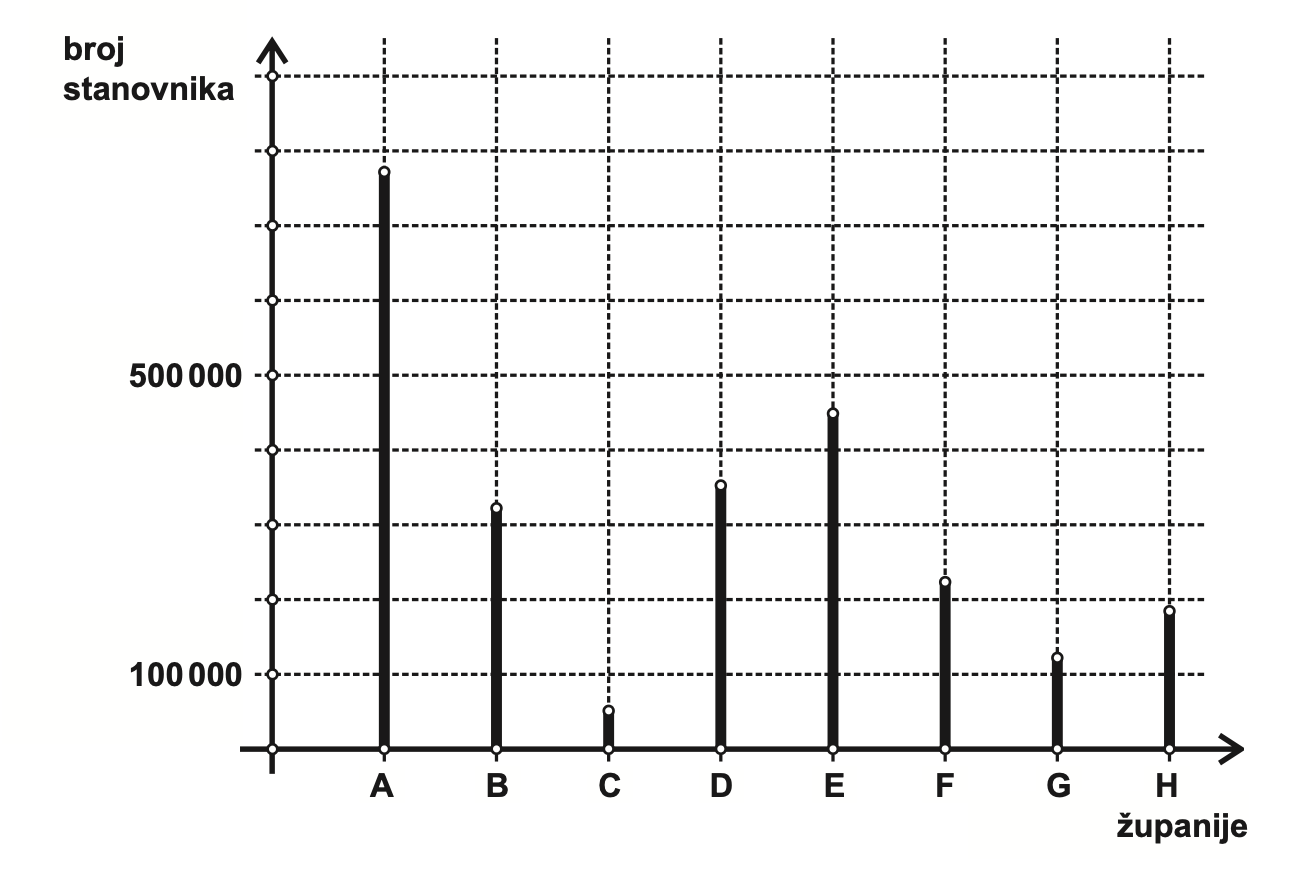 Na slici je prikazan približan broj stanovnika nekih hrvatskih županija prema popisu iz 2001. godine.