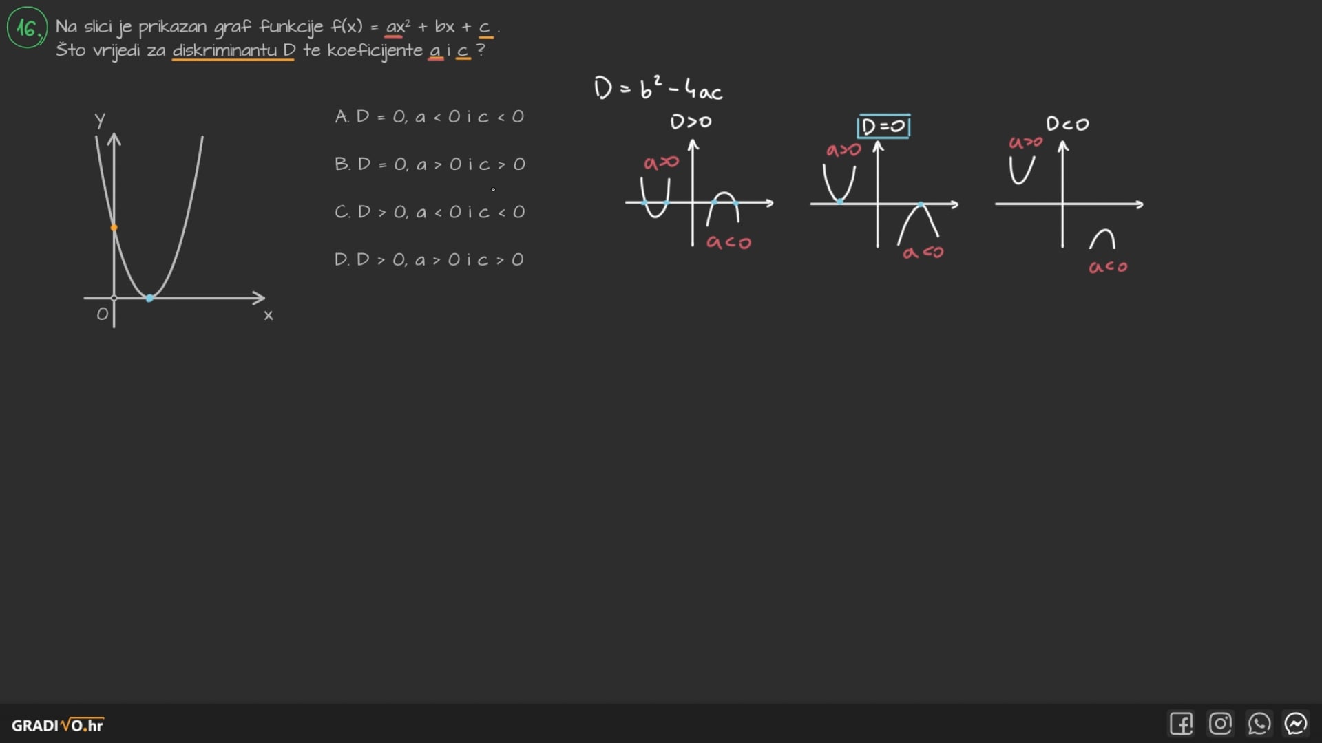 D. $D>0, a>0$ i $c>0$