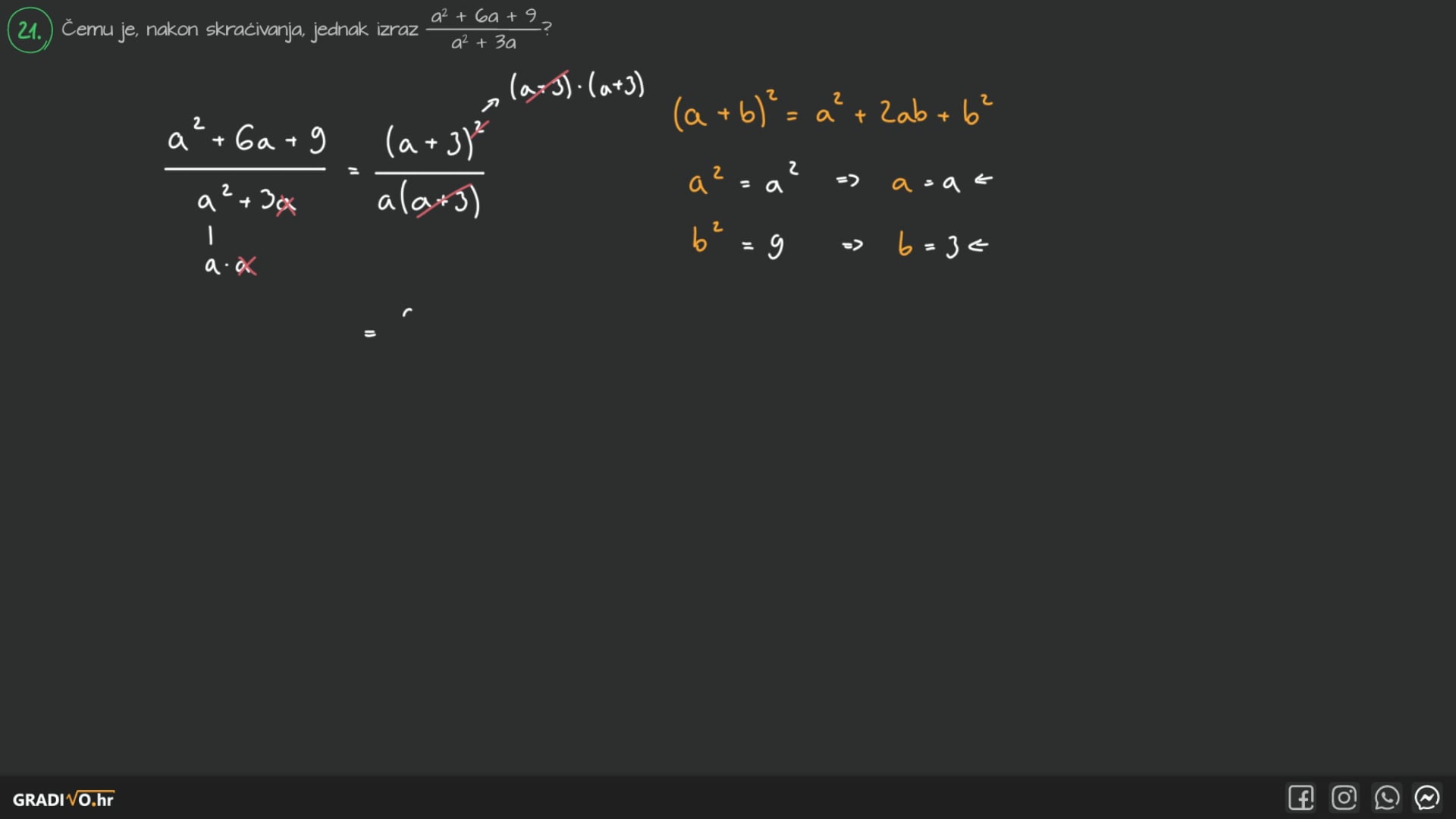 Čemu je, nakon skraćivanja, jednak izraz $\frac{a^{2}+6 a+9}{a^{2}+3 a}$ ?