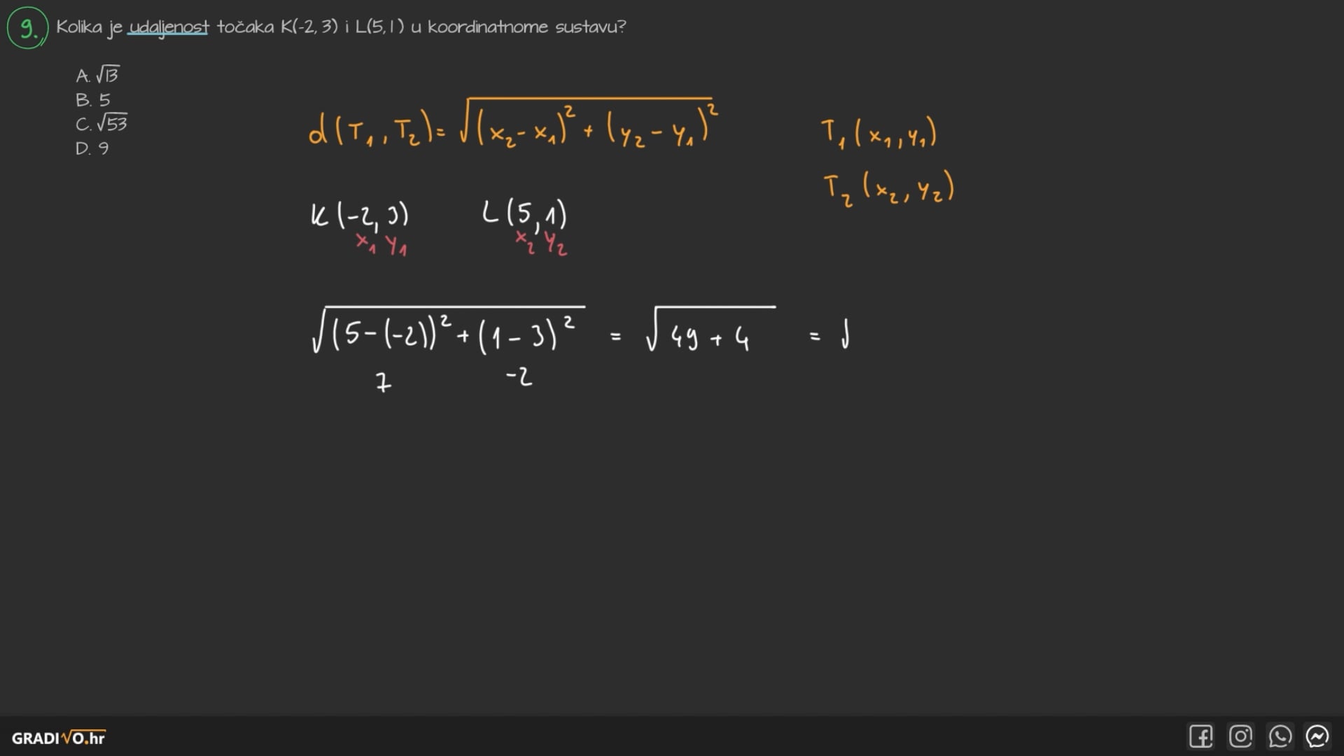 C. $\sqrt{53}$