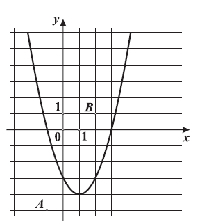 Na slici je prikazana parabola i točke \(A\) i \(B\). Koristeći se slikom odredite rješenje sustava koji čine jednadžba parabole i jednadžba pravca koji prolazi točkama \(A\) i \(B\).