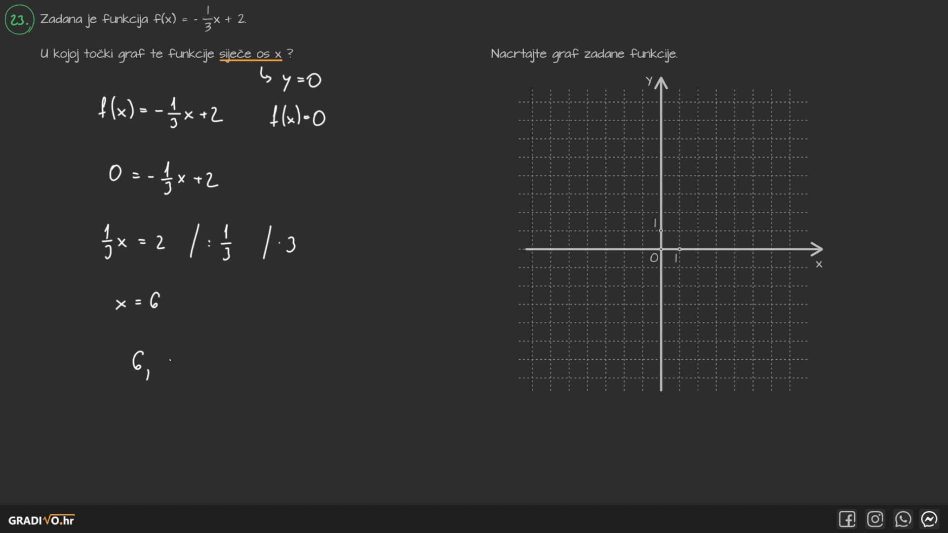 23.1. U kojoj točki graf te funkcije siječe os $x$ ?