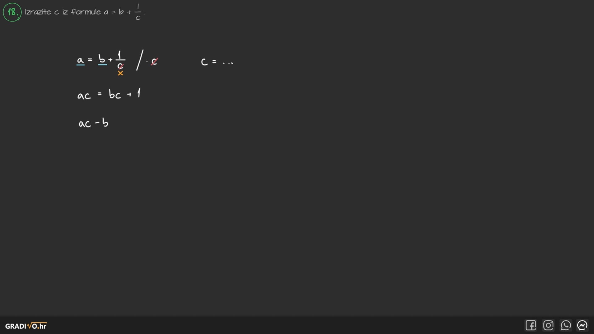 Izrazite $c$ iz formule $a=b+\frac{1}{c}$.