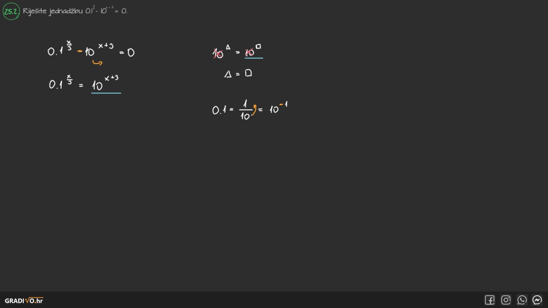 Riješite jednadžbu $0.1^{\frac{x}{3}}-10^{x+3}=0$.