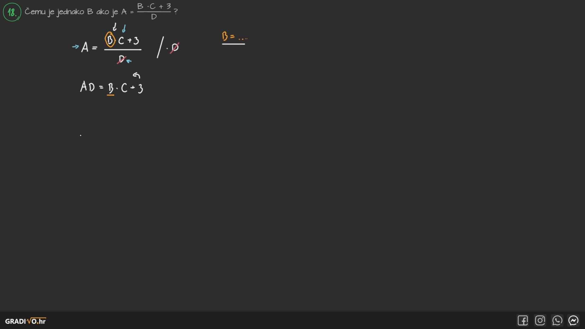 Čemu je jednako $B$ ako je $A=\frac{B \cdot C+3}{D}$ ?