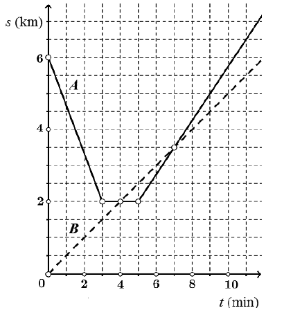 Biciklist \(B\) i automobilist \(A\) krenuli su istodobno iz različitih mjesta jedan ususret drugomu vozeći ravnom cestom. Biciklist je krenuo iz škole.