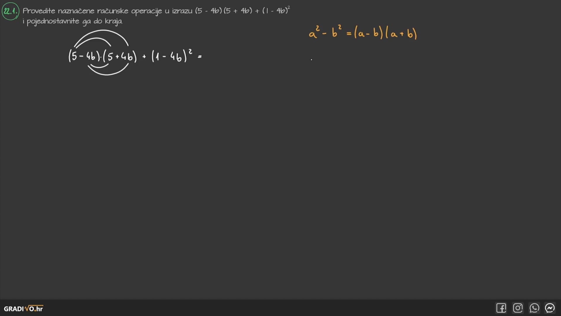 Provedite naznačene računske operacije u izrazu $(5-4 b)(5+4 b)+(1-4 b)^{2}$ i pojednostavnite ga do kraja.