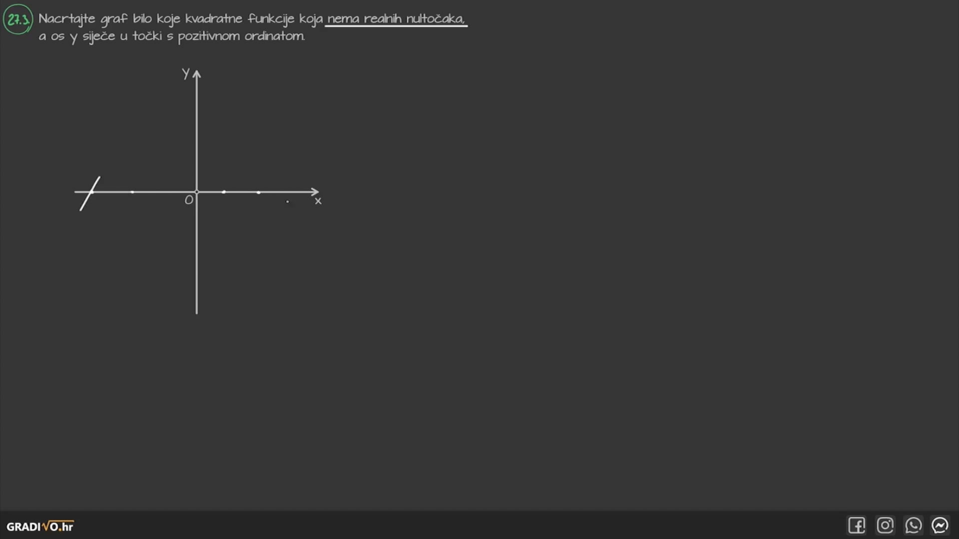 Nacrtajte graf bilo koje kvadratne funkcije koja nema realnih nultočaka, a os $y$ siječe u točki s pozitivnom ordinatom.