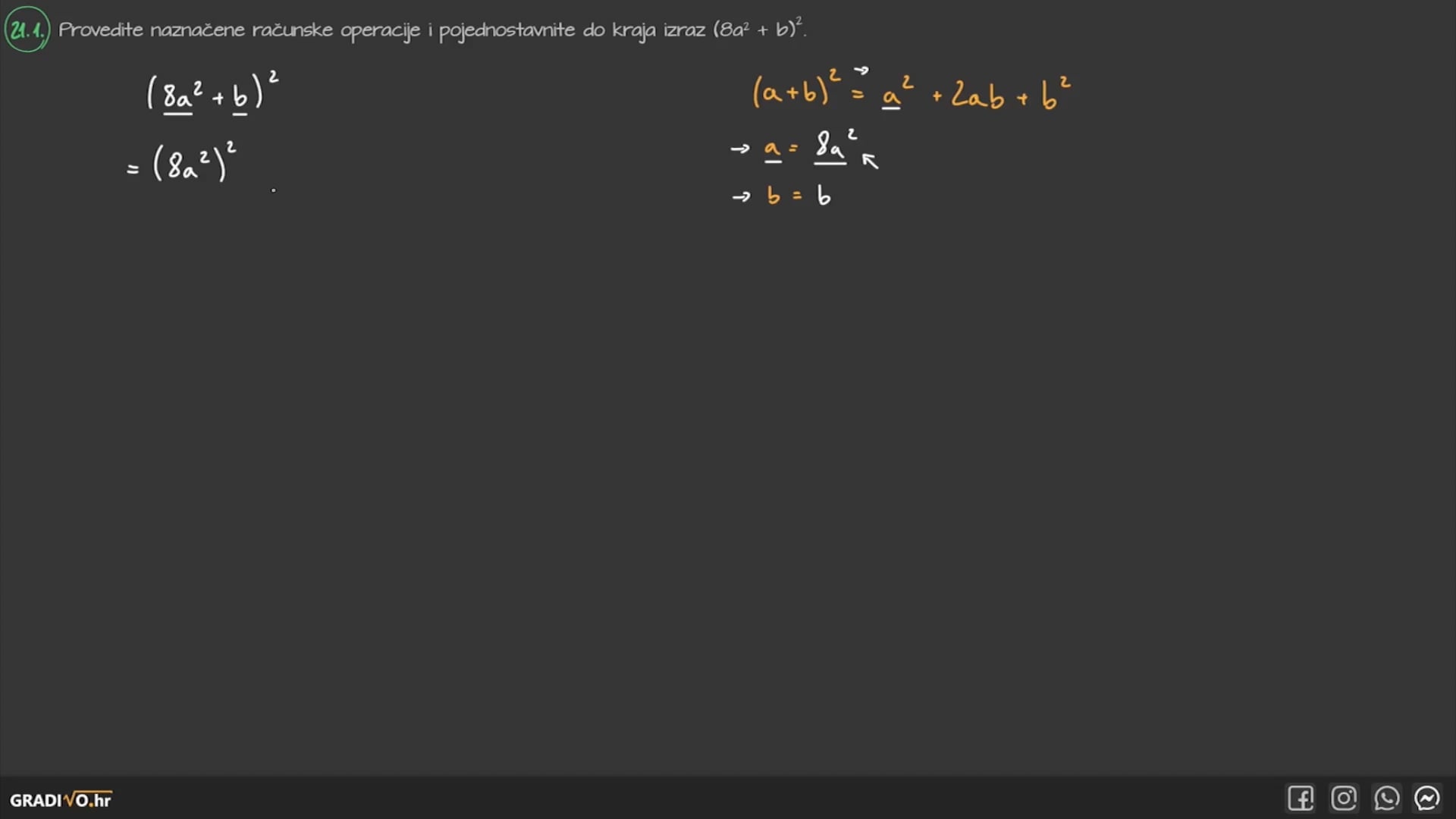Provedite naznačene računske operacije i pojednostavnite do kraja izraz $\left(8 a^{2}+b\right)^{2}$