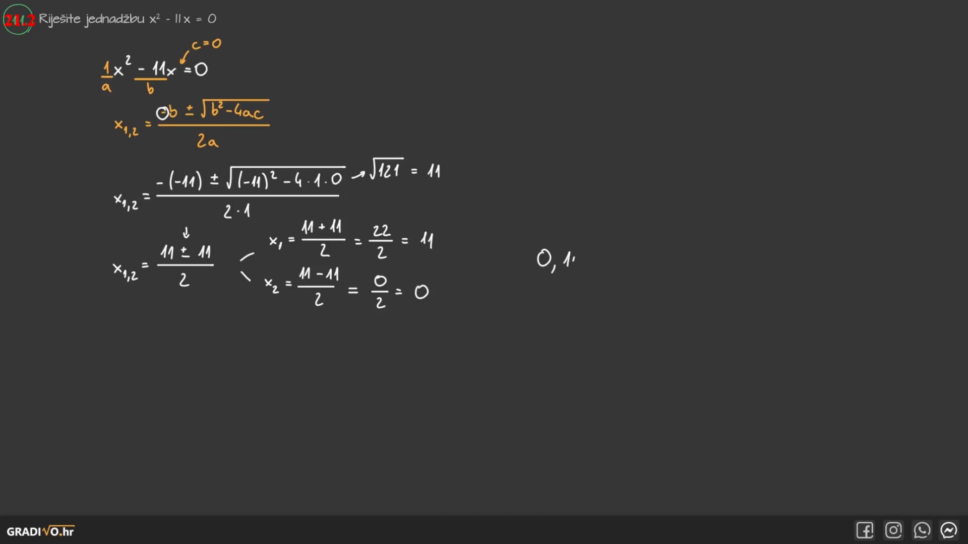 Riješite jednadžbu $x^{2}-11 x=0$.