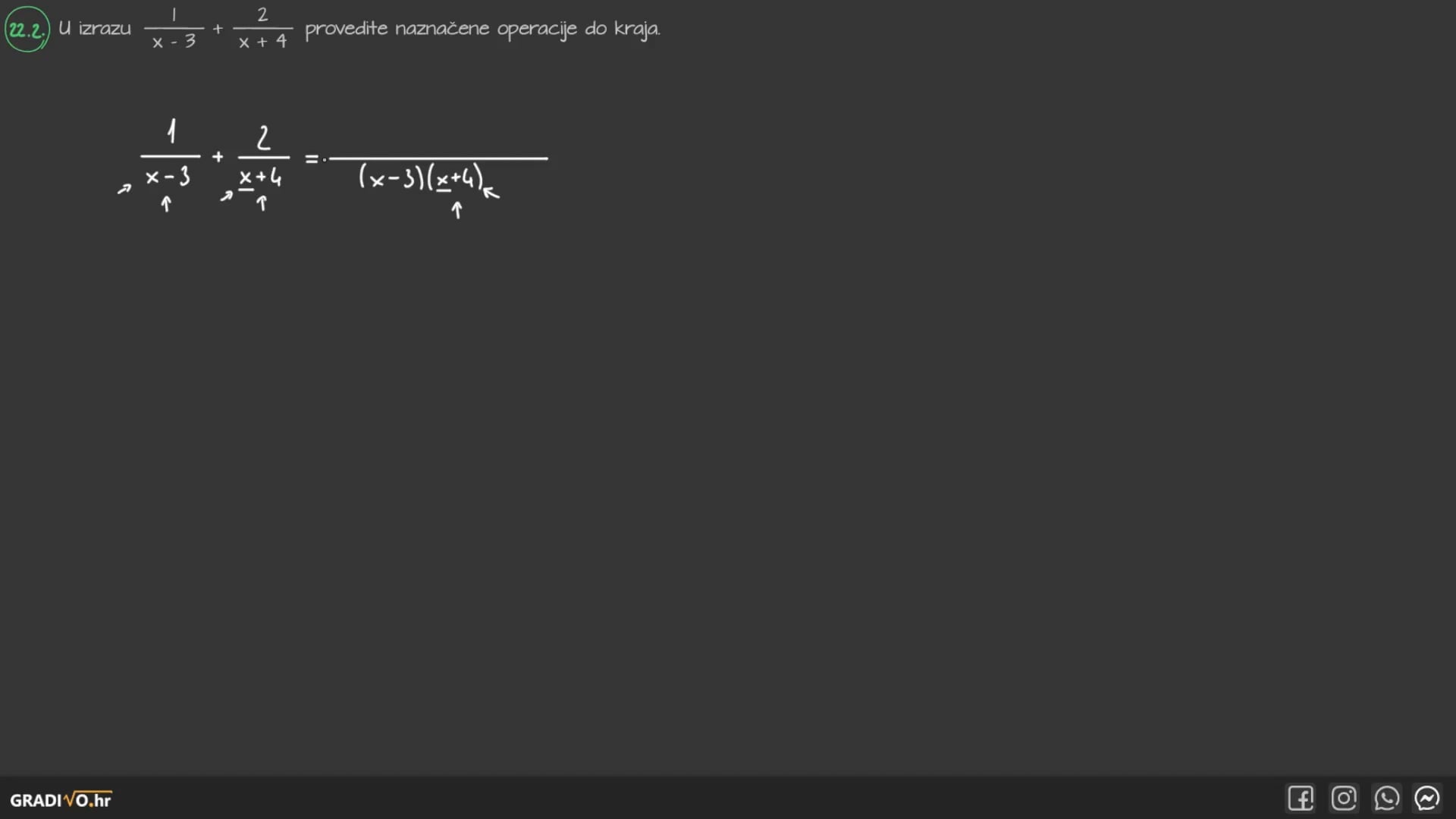 U izrazu $\frac{1}{x-3}+\frac{2}{x+4}$ provedite naznačene operacije do kraja.