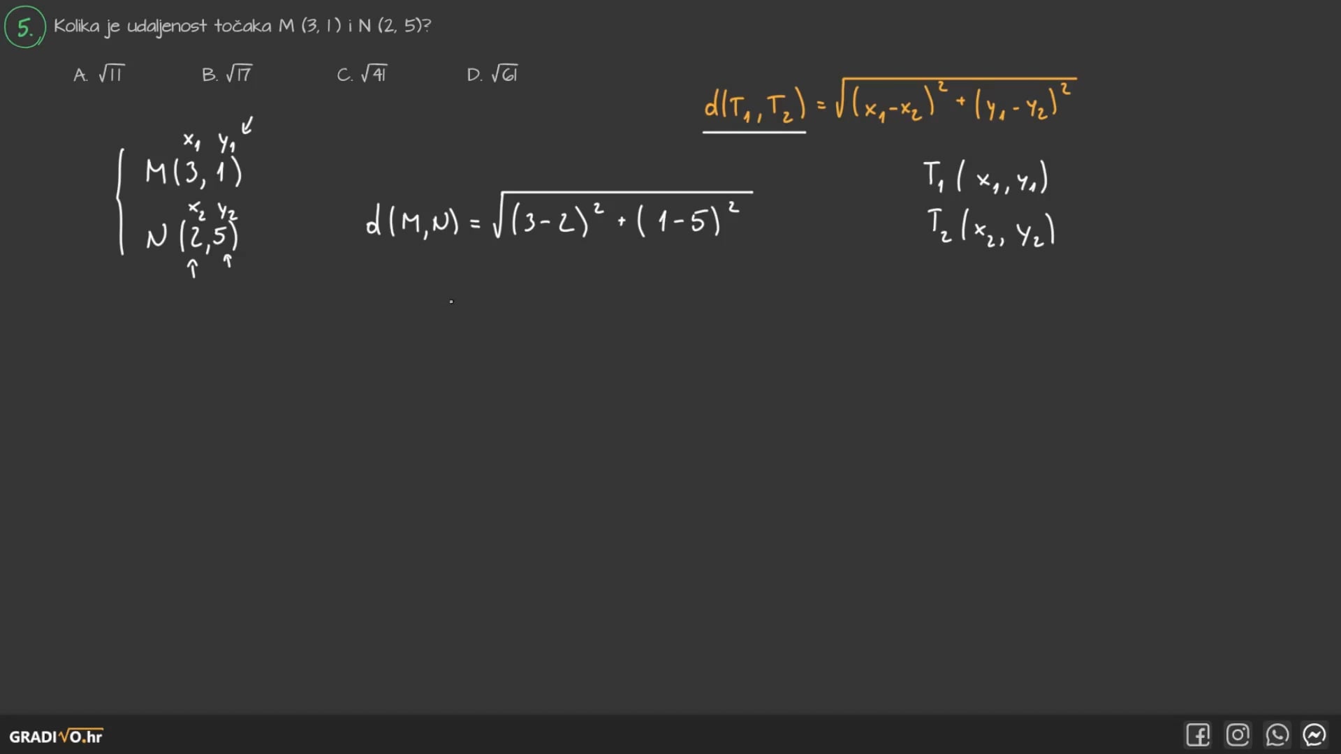D. \(\sqrt{61}\)