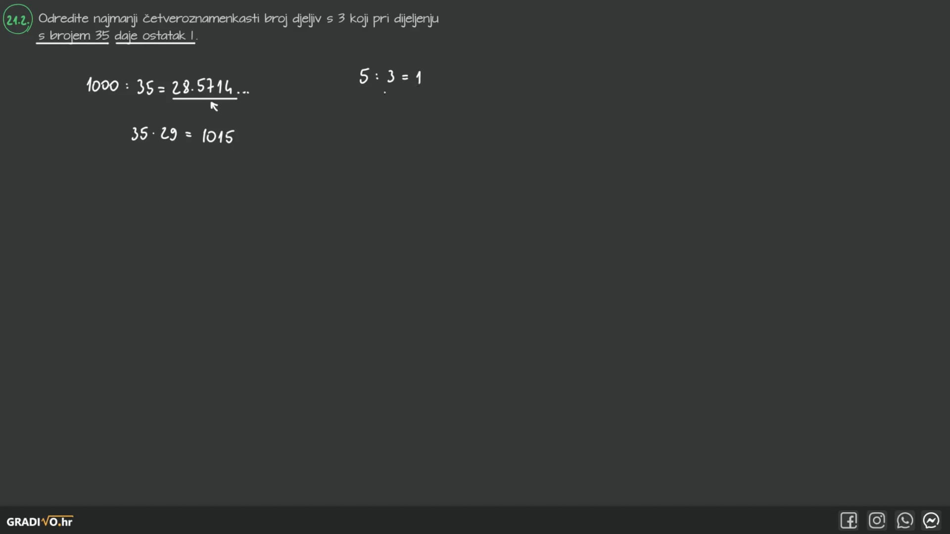 Odredite najmanji četveroznamenkasti broj djeljiv s 3 koji pri dijeljenju s brojem 35 daje ostatak 1 .