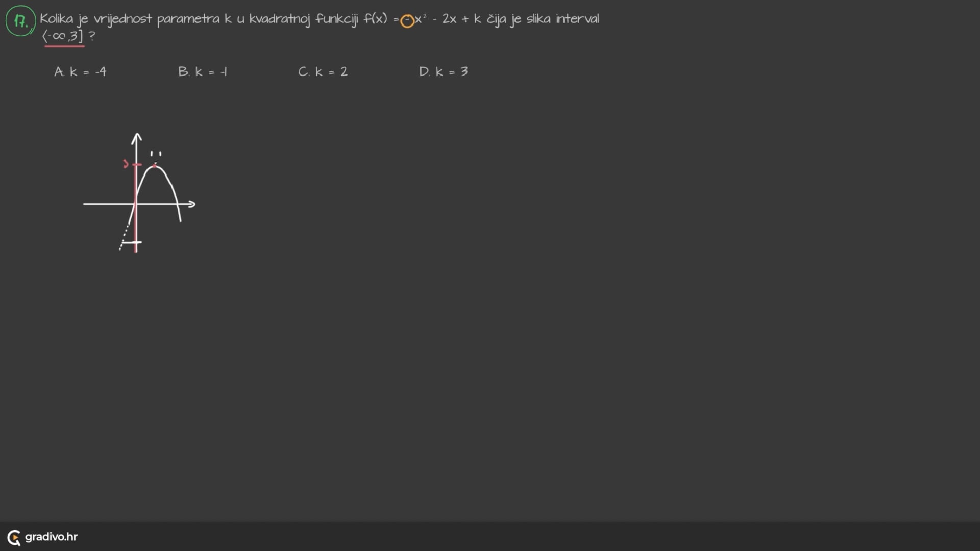 D. $k=3$