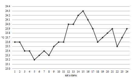 24.2. Kolika je prosječna vrijednost pet najviših izmjerenih temperatura toga dana?