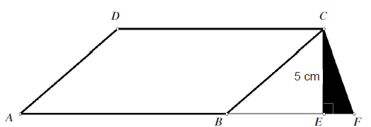 Zadani su paralelogram $A B C D$ i pravokutan trokut $C E F$. Kateta $\overline{E F}$ je 7 puta kraća od stranice $\overline{A B}$. Površina trokuta $C E F$ iznosi $12 \mathrm{~cm}^{2}$.