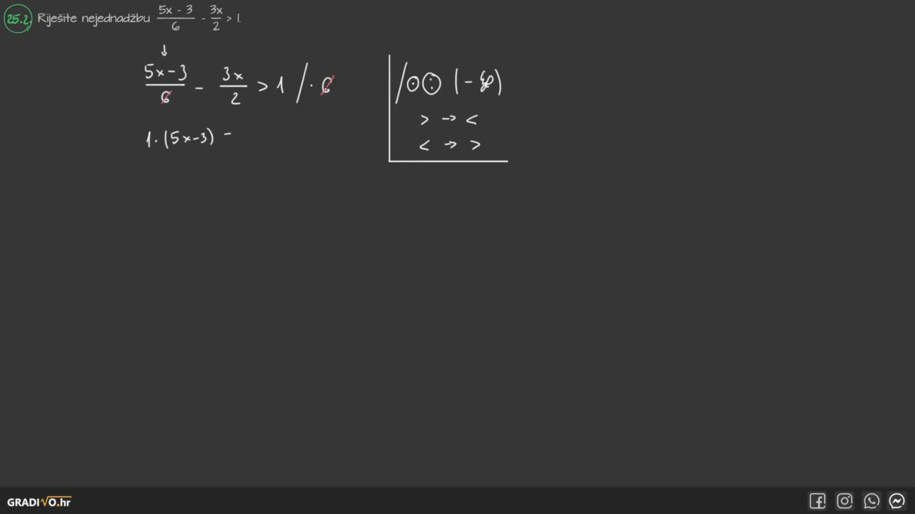 Riješite nejednadžbu $\frac{5 x-3}{6}-\frac{3 x}{2}>1$.