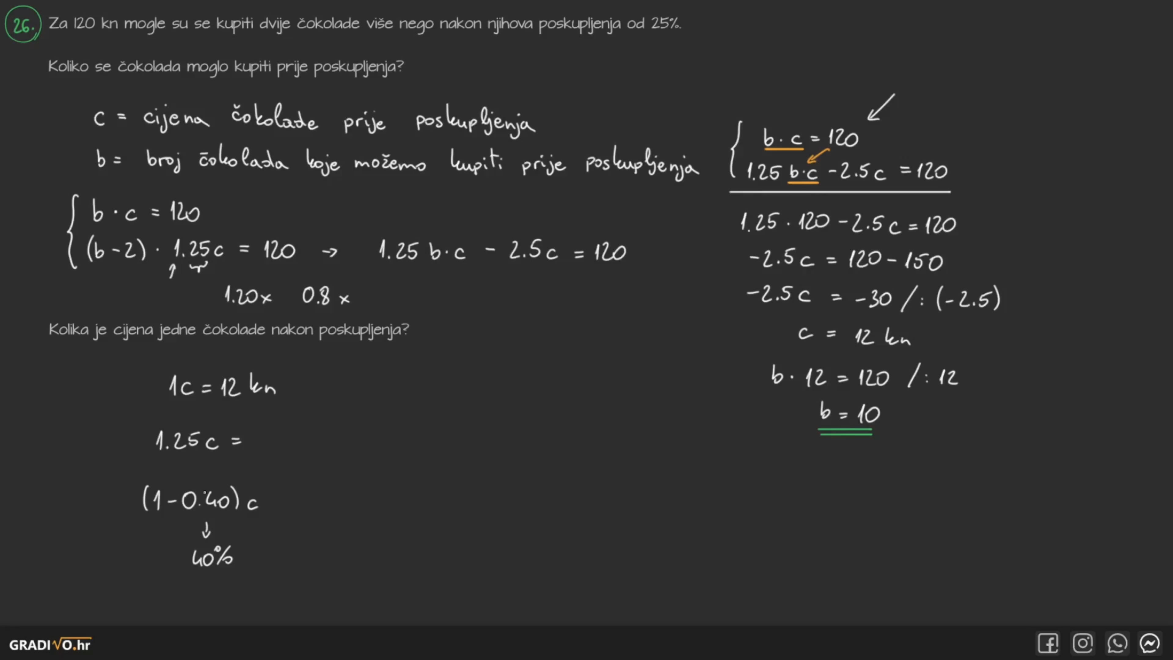 26.2. Kolika je cijena jedne čokolade nakon poskupljenja?