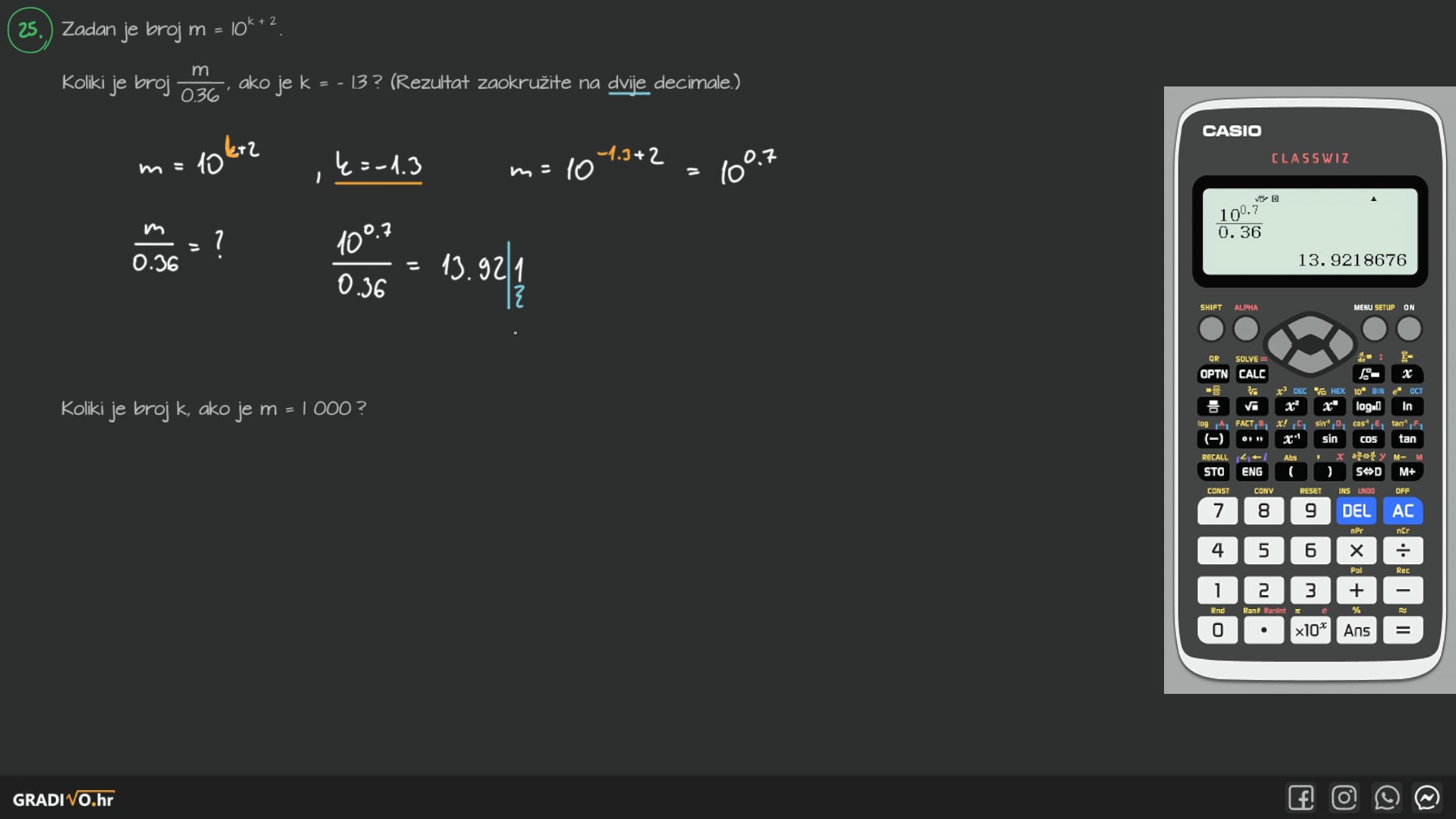 25.2. Koliki je broj $k$, ako je $m=1000$ ?