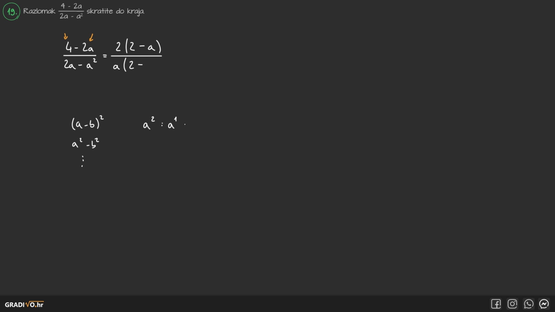 Razlomak \(\frac{4-2 a}{2 a-a^{2}}\) skratite do kraja.