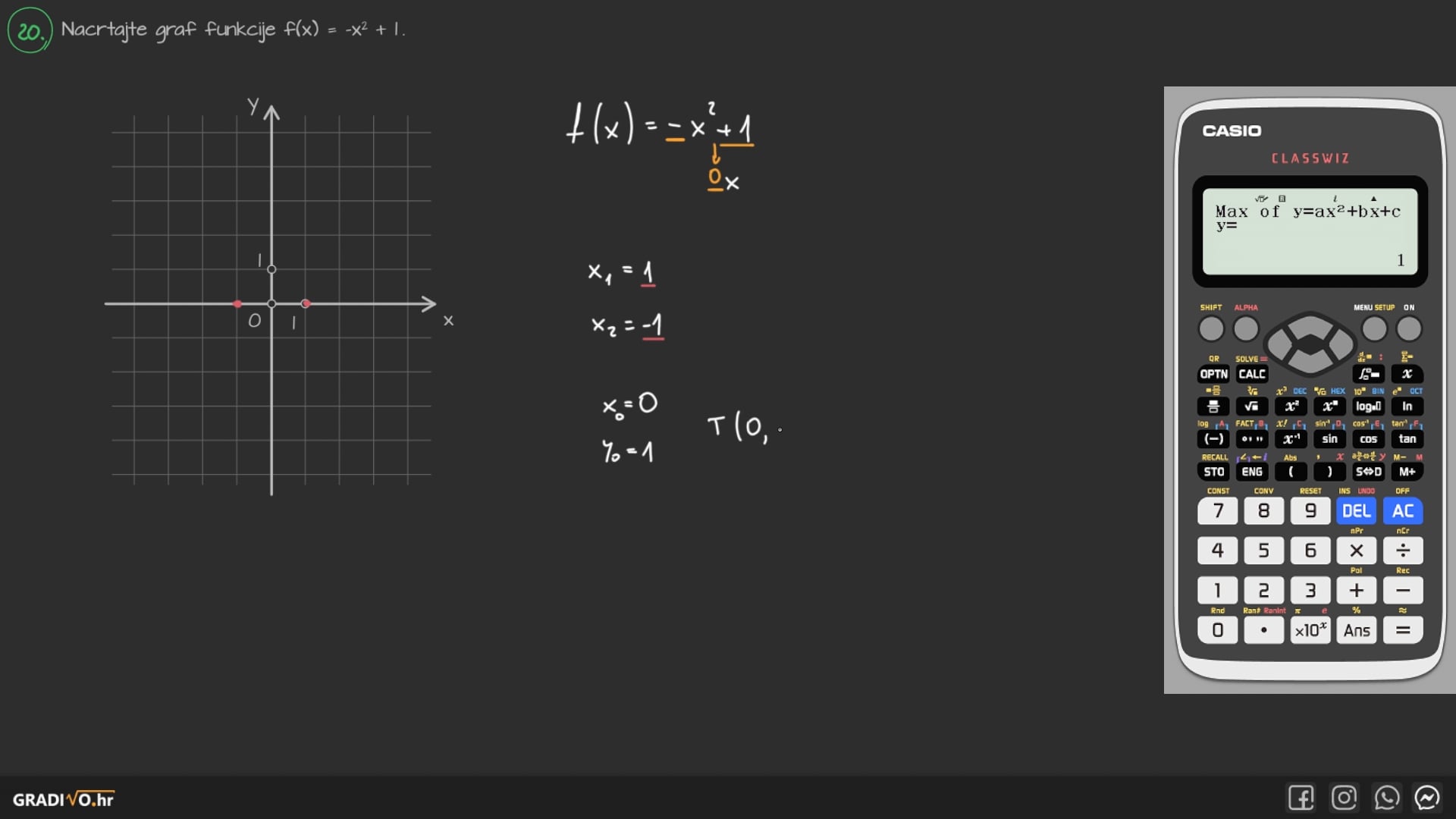 Nacrtajte graf funkcije \(f(x)=-x^{2}+1\).