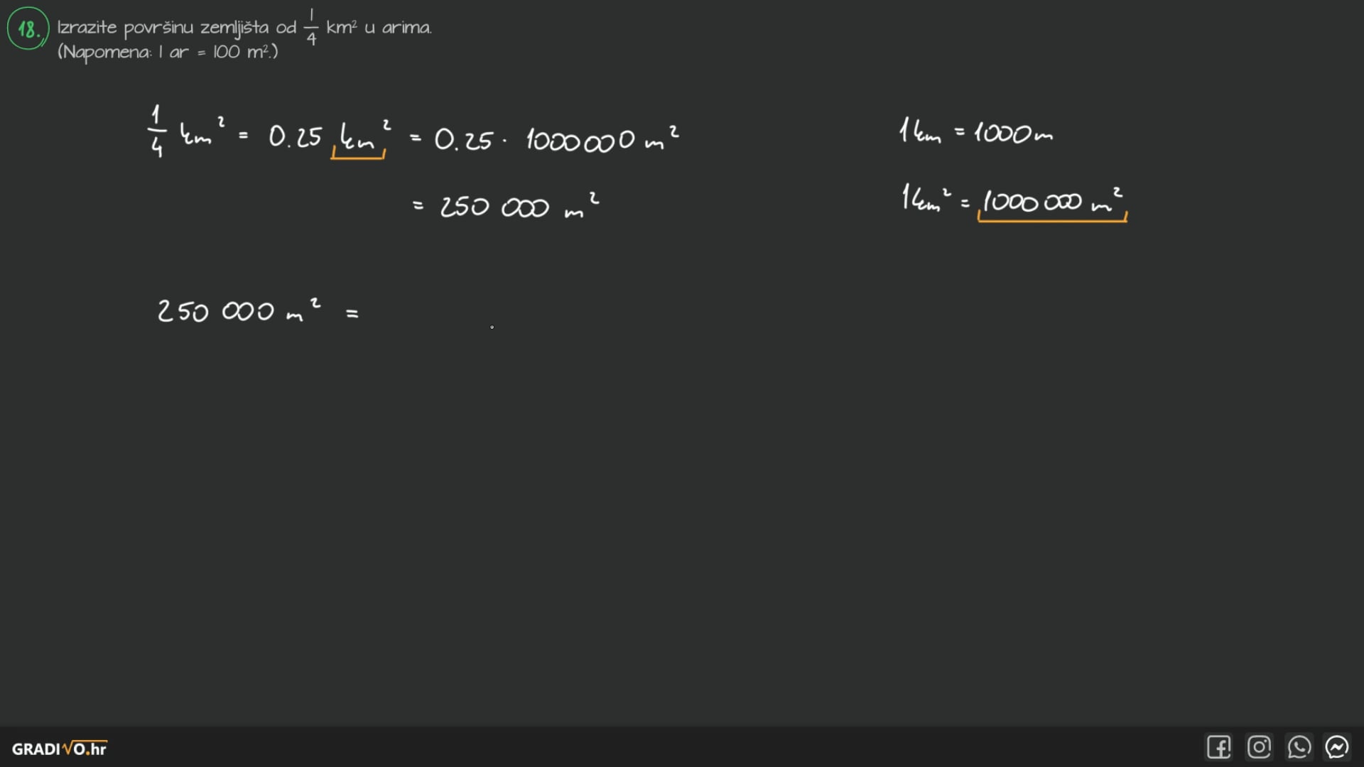 Izrazite površinu zemljišta od $\frac{1}{4} \mathrm{~km}^{2} \mathrm{u}$ arima.