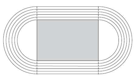 Nogometno igralište dugo je 110 m i široko 70 m . Nad kraćim stranicama igrališta nalazi se dio terena u obliku polukruga, a teren okružuje atletska staza s pet traka za trčanje. Svaka traka za trčanje široka je 1 m. Izračunajte razliku u duljini najdulje i najkraće trake za trčanje uz pretpostavku da trkači uvijek trče unutarnjim rubom svoje trake. Zaokružite rezultat na dvije decimale.
