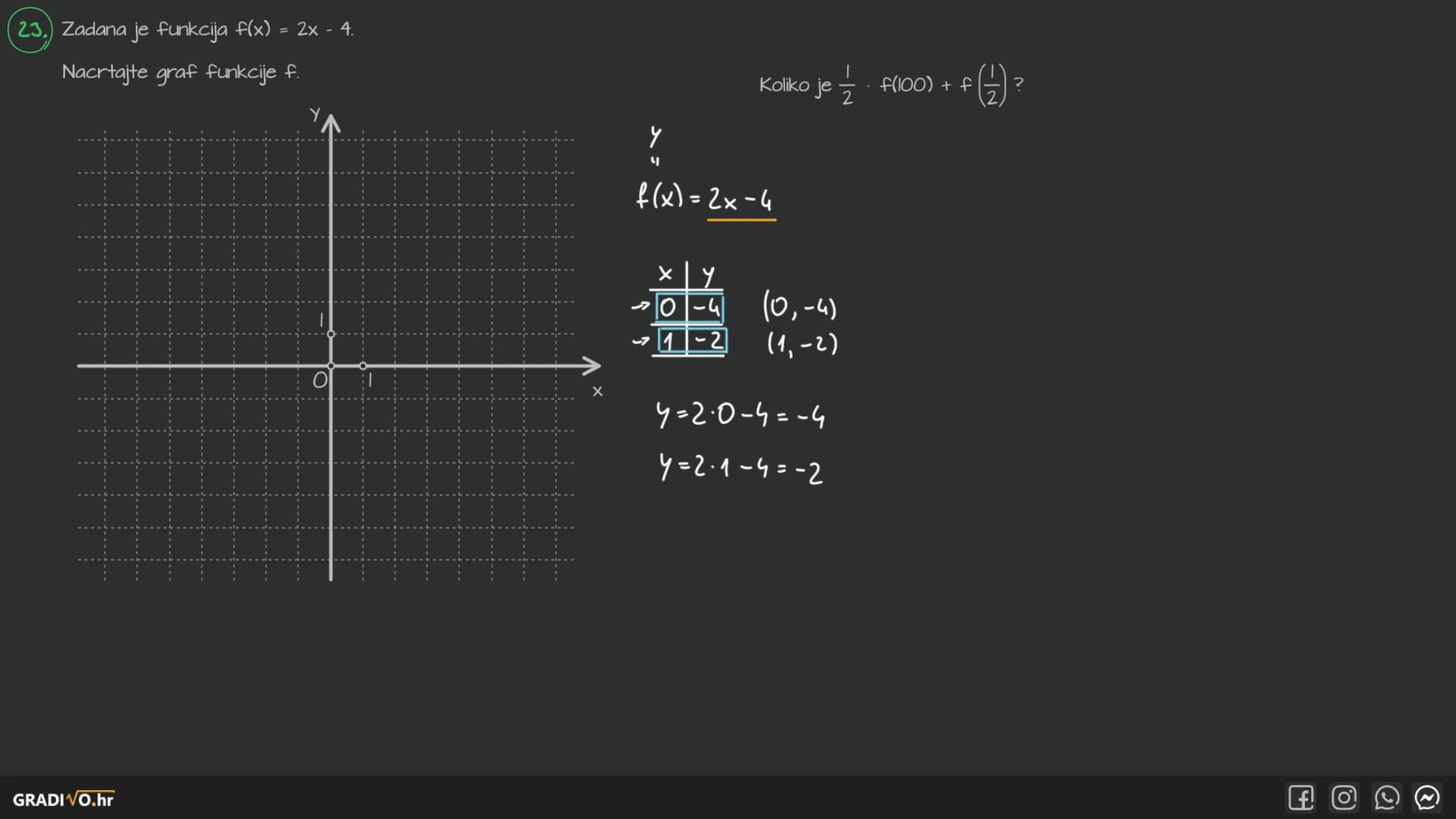 Zadana je funkcija $f(\mathrm{x}) = 2\mathrm{x} - 4$ .