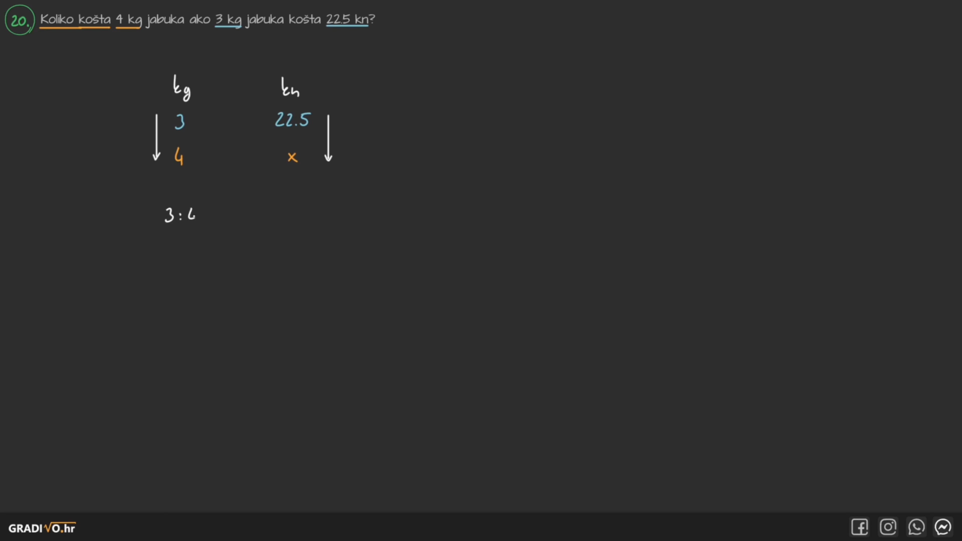 Koliko košta 4 kg jabuka ako 3 kg jabuka košta 22.5 kn?