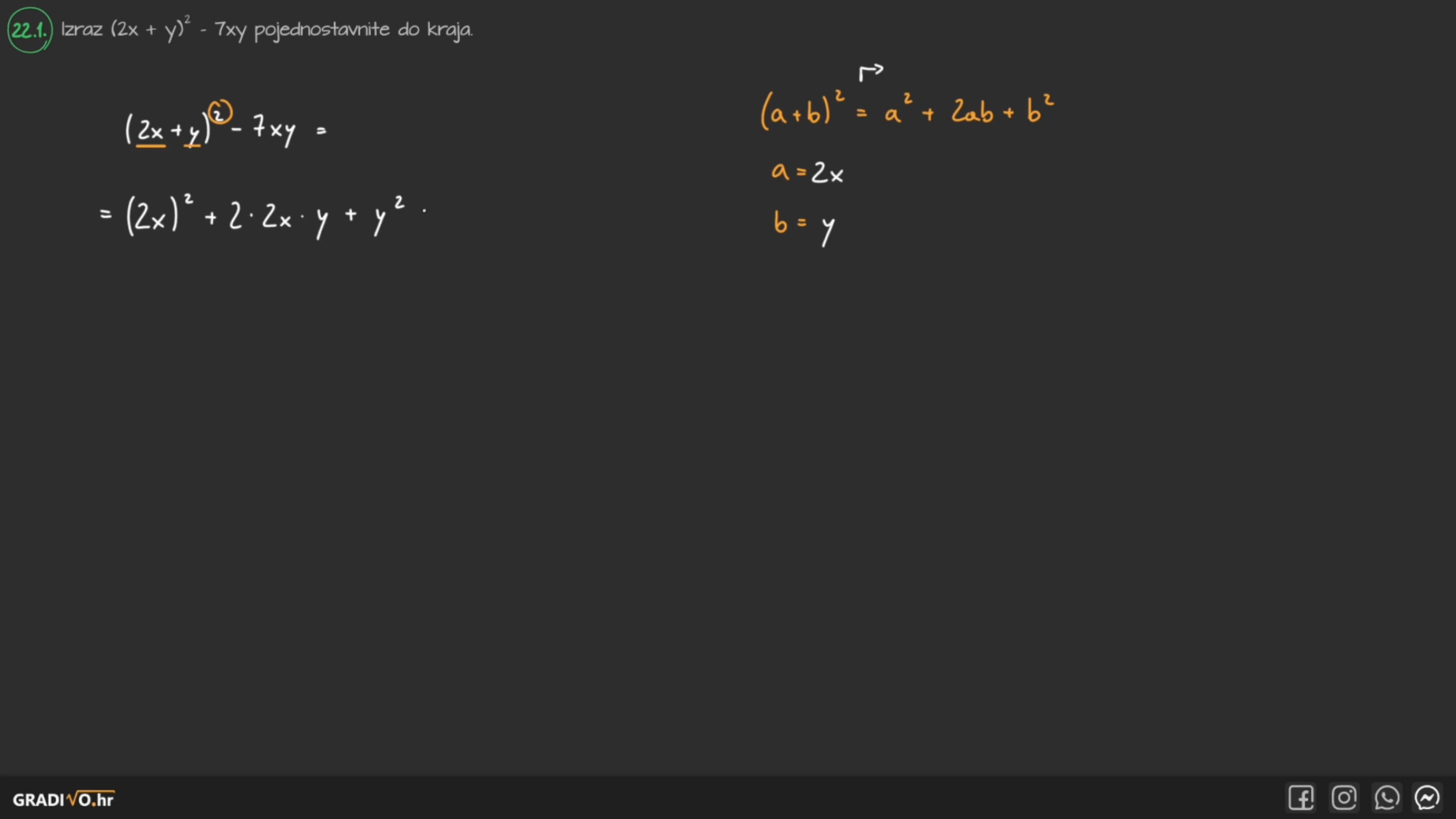 Izraz $(2 x+y)^{2}-7 x y$ pojednostavnite do kraja