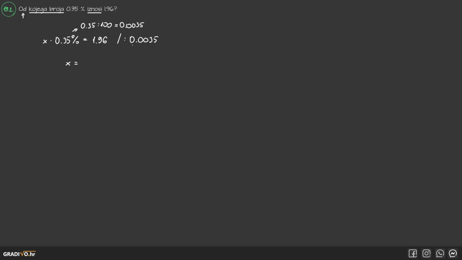 Od kojega broja $0.35 \%$ iznosi 1.96 ?