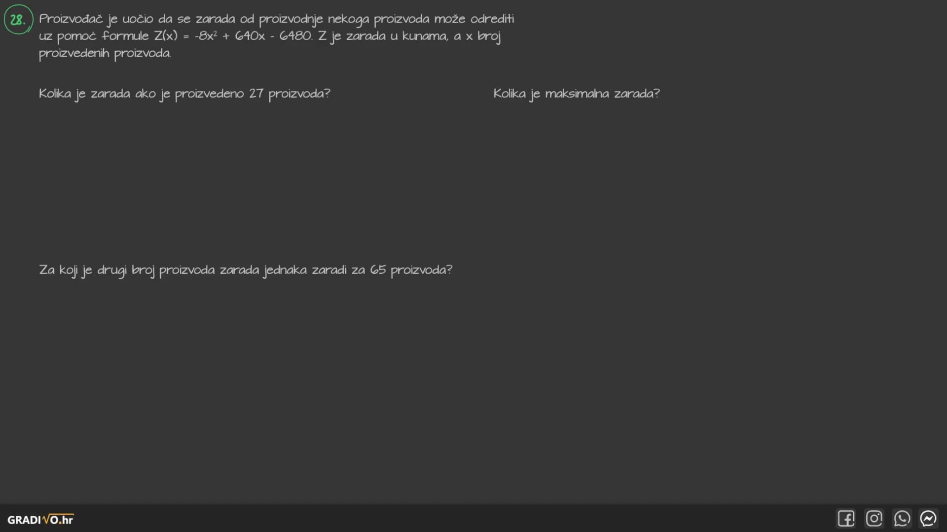 28.2. Za koji je drugi broj proizvoda zarada jednaka zaradi za 65 proizvoda?