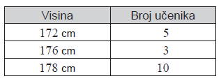 Podatci o visini i broju učenika nekoga razreda navedeni su u tablici.