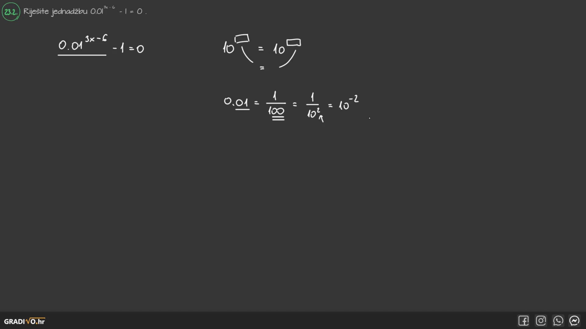 Riješite jednadžbu $0.01^{3 x-6}-1=0$.