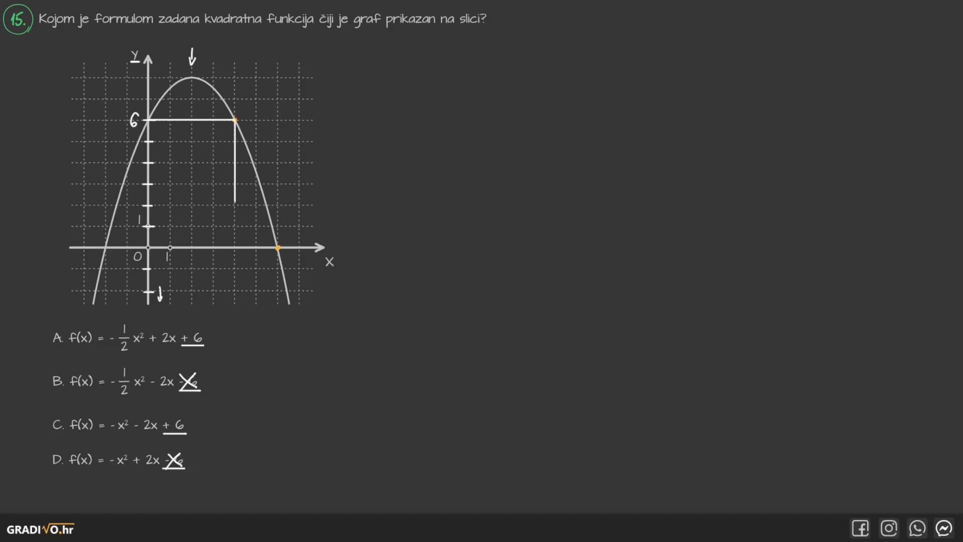 A. $f(x)=-\frac{1}{2} x^{2}+2 x+6$