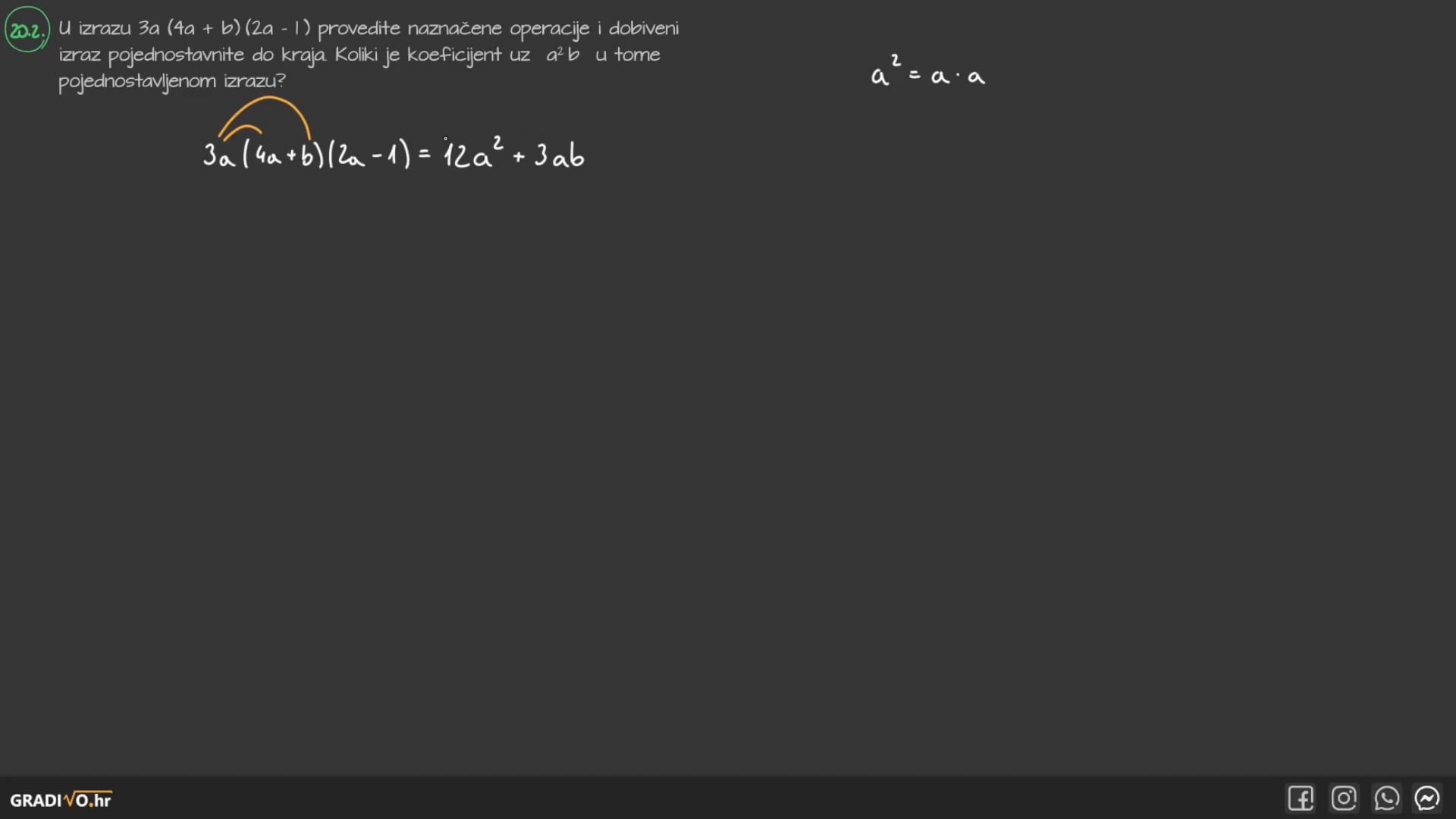 U izrazu $3 a(4 a+b)(2 a-1)$ provedite naznačene operacije i dobiveni izraz pojednostavnite do kraja. Koliki je koeficijent uz $a^{2} b$ u tome pojednostavljenom izrazu?