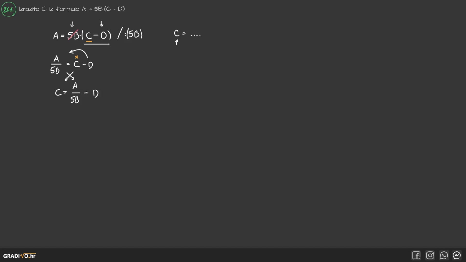 Izrazite $C$ iz formule $A=5 B(C-D)$.
