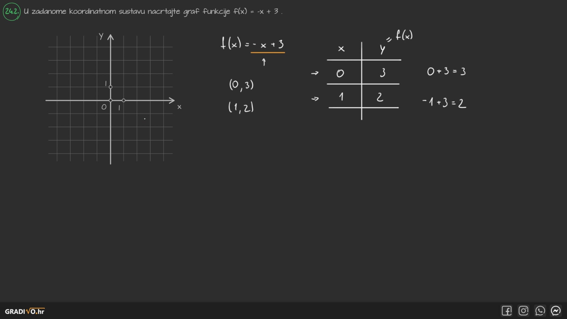 U zadanome koordinatnom sustavu nacrtajte graf funkcije $f(x)=-x+3$.