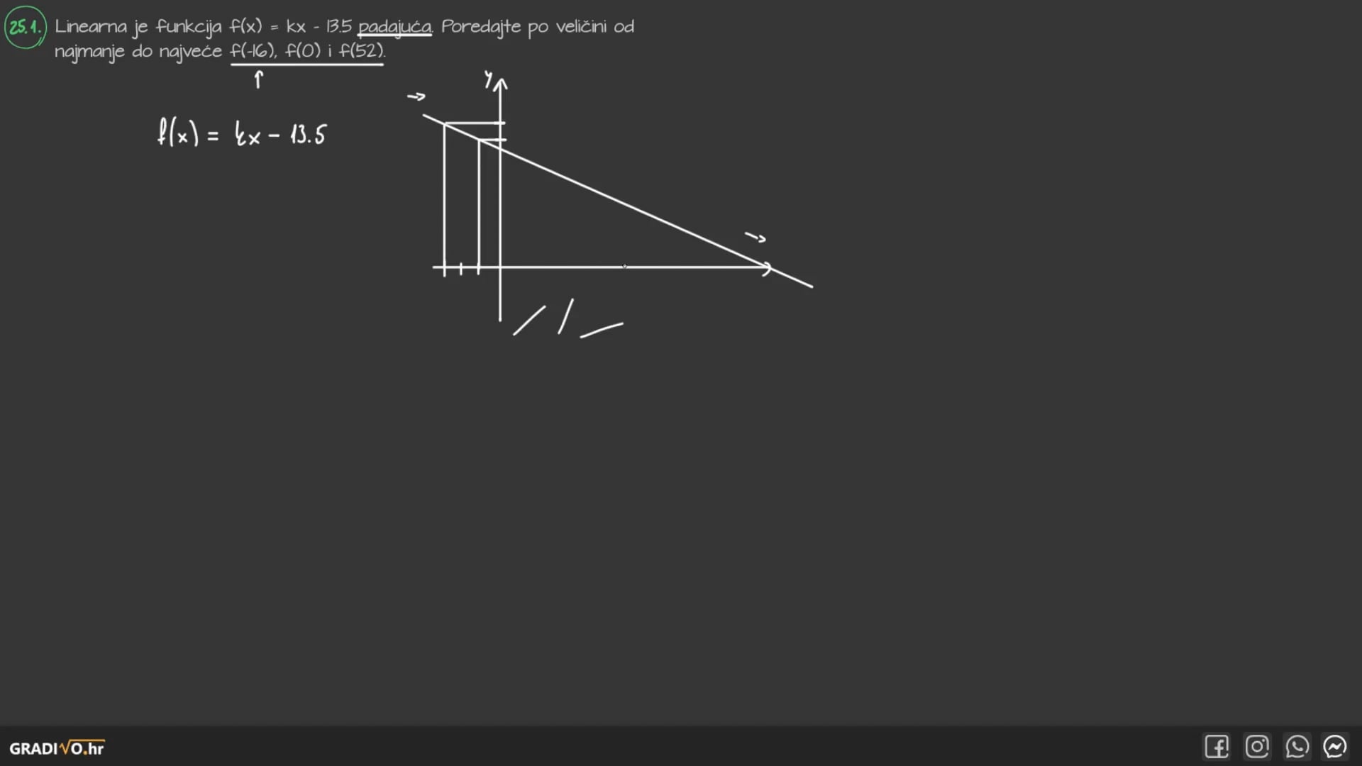 Linearna je funkcija $f(x)=k x-13.5$ padajuća. Poredajte po veličini od najmanje do najveće $f(-16), f(0)$ i $f(52)$.