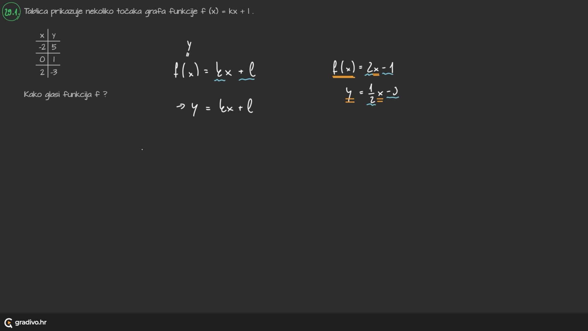 Tablica prikazuje nekoliko točaka grafa funkcije $f(x)=k x+l$.