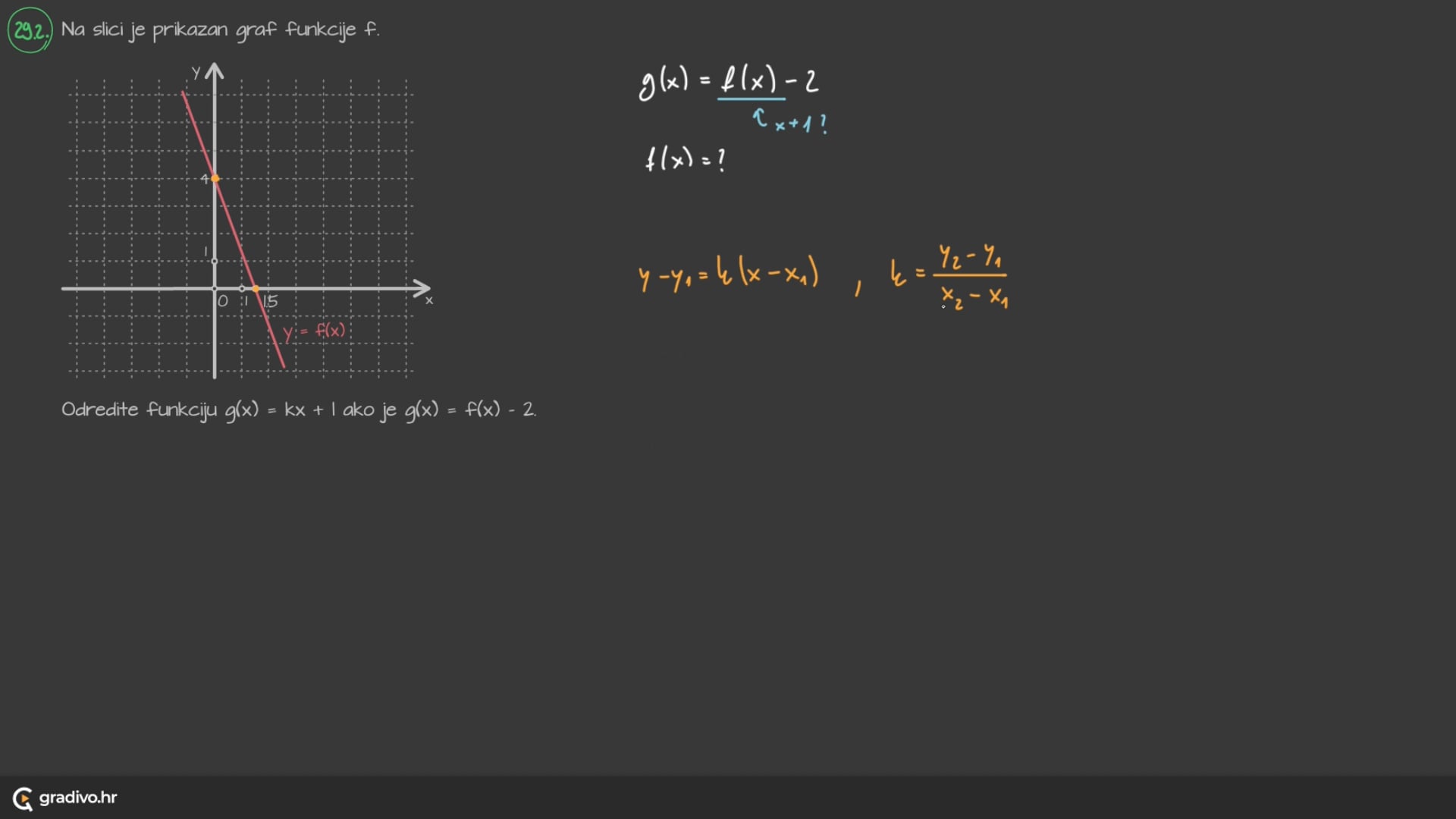 Odredite funkciju $g(x)=k x+l$ ako je $g(x)=f(x)-2$.