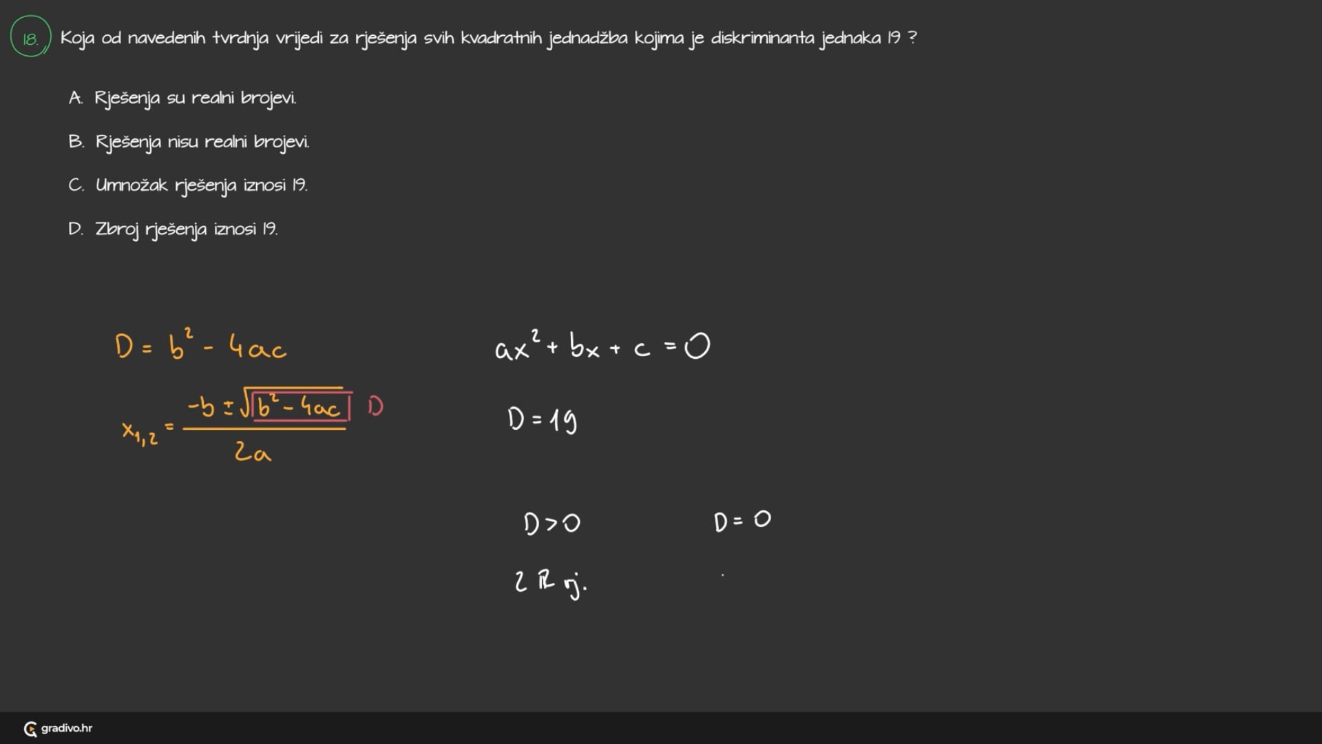 D. Zbroj rješenja iznosi 19.